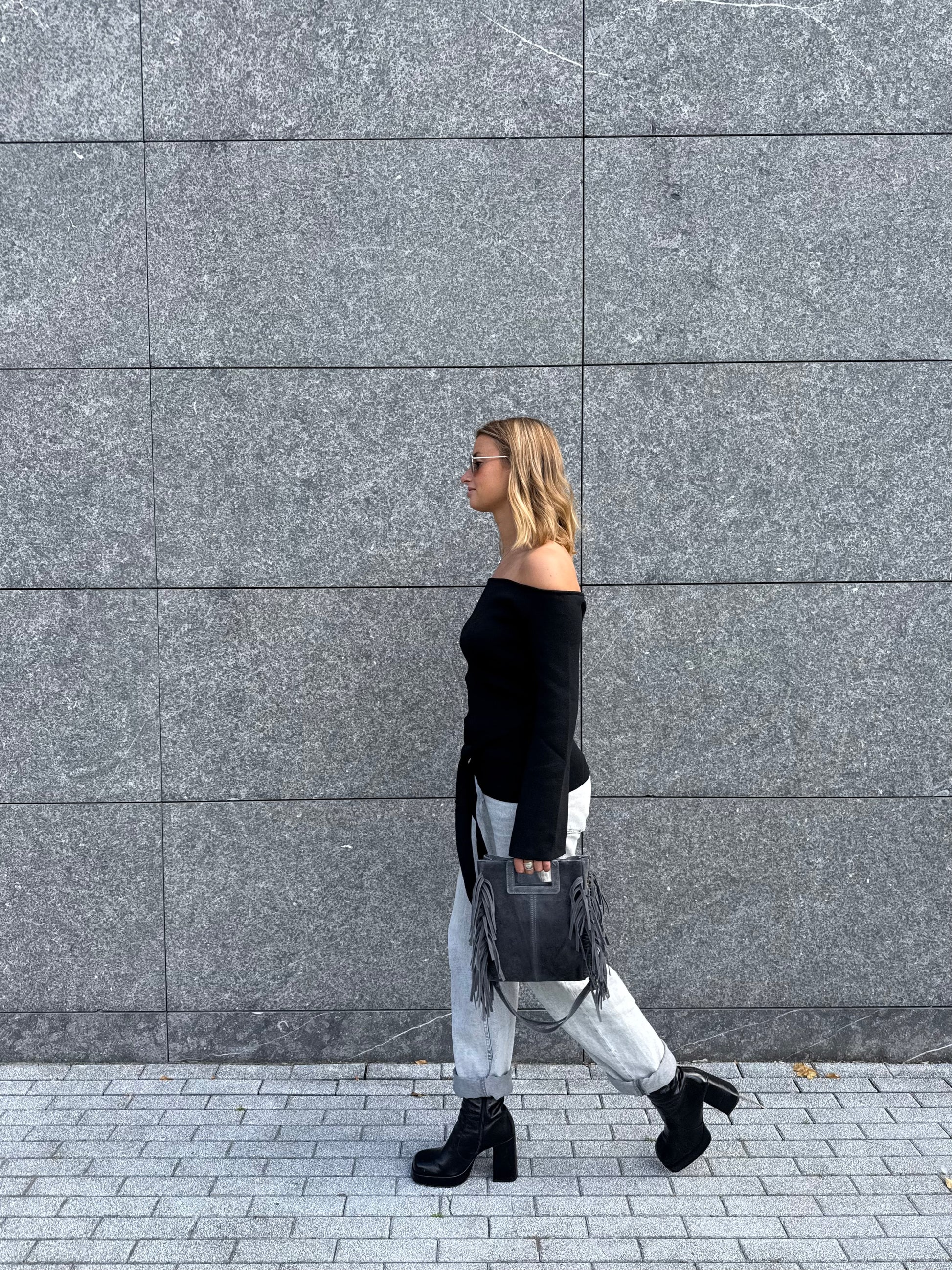 - Elegant off-the-shoulder neckline