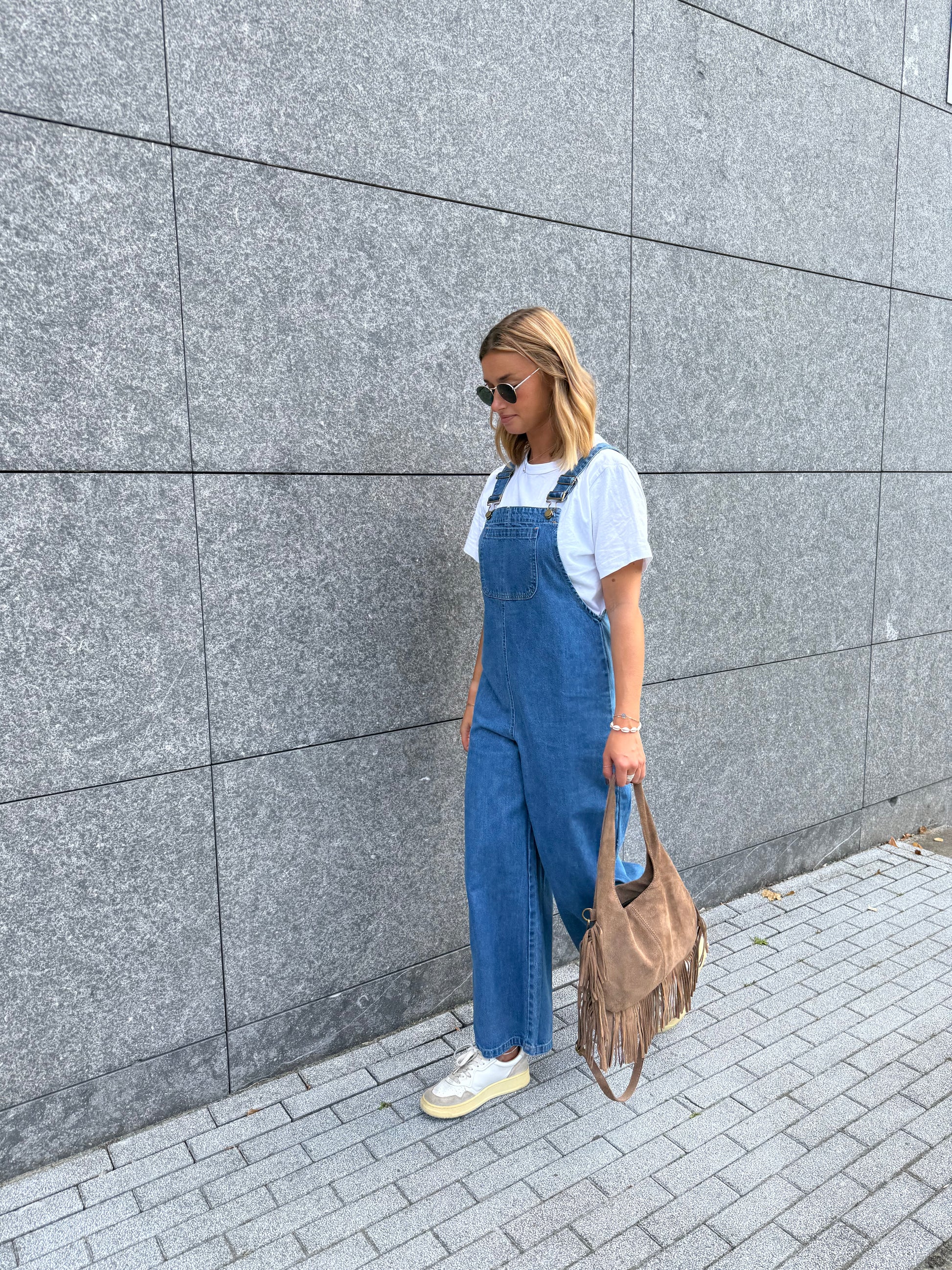 - Women’s denim dungarees with relaxed straight-leg cut
